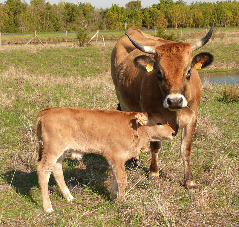 La vache mesure 140 cm pour 700 kg et le mâle 145 cm pour 1200 kg.